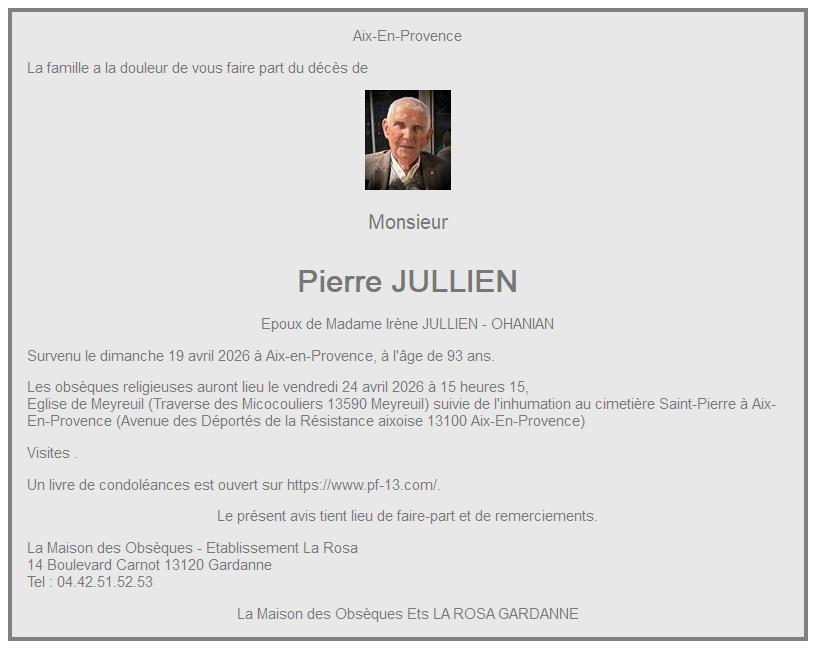 Cimetière Staint Pierre à Aix en Provence le vendredi 24 avril à 16 heures 30